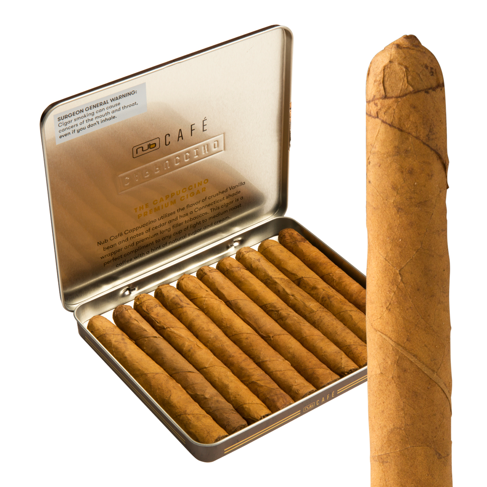 NUB NUANCE SINGLE ROAST 4X30 TINS (50)” refers to a package containing 50 NUB NUANCE SINGLE ROAST cigars. Each cigar measures approximately 4 inches in length with a ring gauge of 30, and they are packaged in tins.